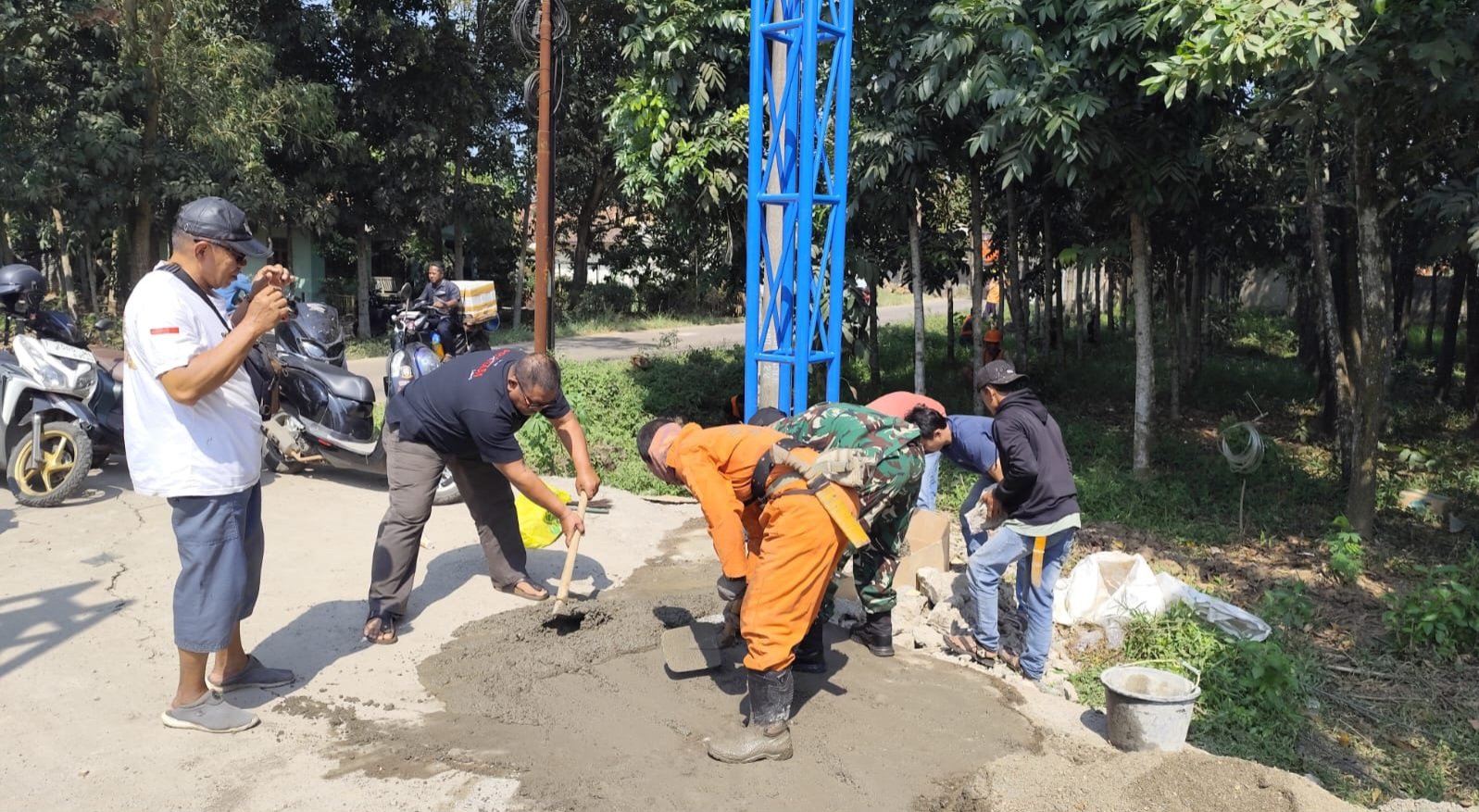 Kegiatan karya bakti ini dilaksanakan bersama warga setempat dengan penuh semangat kebersamaan.