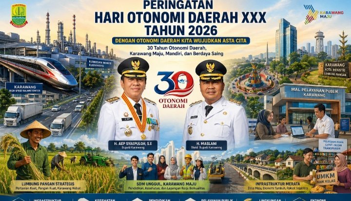 Peringatan Hari Otonomi Daerah ke-30 Tahun 2026 bukan sekadar seremoni tahunan, tetapi refleksi atas perjalanan Karawang dari daerah agraris menjadi salah satu pusat pertumbuhan ekonomi nasional. Dengan modal kawasan industri internasional, sektor pertanian kuat, posisi geografis strategis, infrastruktur modern, dan sumber daya manusia produktif, Karawang memiliki peluang besar menjadi kabupaten termaju di Indonesia.