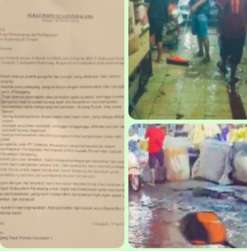 KARAWANG | CIKAMPEK | jendelakita. Click |- Puluhan pedagang aktif Pasar Pemda 1 Cikampek melayangkan surat pernyataan bersama kepada Kepala Dinas Perindustrian dan Perdagangan (Disperindag) Kabupaten Karawang, Minggu 19 April 2026. Surat bernomor 02/SP/IV/2026 itu berisi 5 poin keluhan utama mulai dari pungli, kondisi bangunan rusak, hingga banjir yang kerap melumpuhkan aktivitas jual beli.
