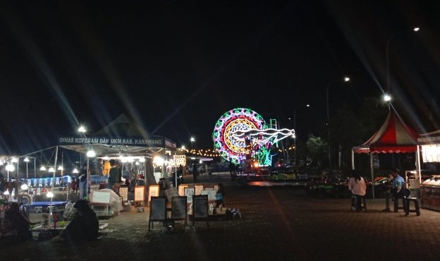 Dengan tarif mulai dari Rp10.000 hingga Rp15.000 per wahana, pengunjung sudah bisa menikmati beragam permainan seru yang cocok untuk anak-anak hingga remaja. Lampu warna-warni, deretan jajanan khas pasar malam, serta suasana hangat kebersamaan membuat lokasi ini menjadi alternatif hiburan malam yang menarik di Karawang.